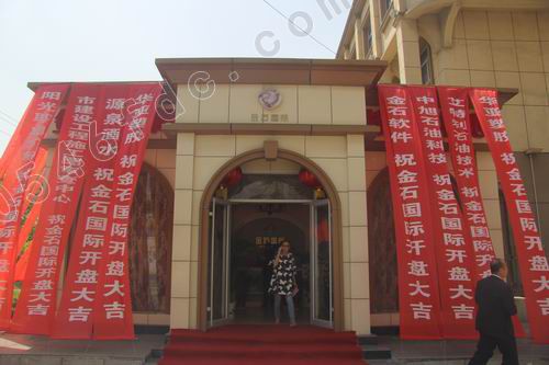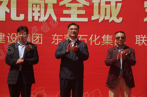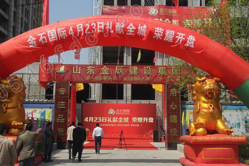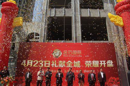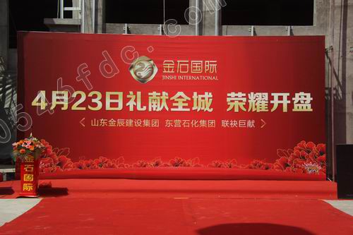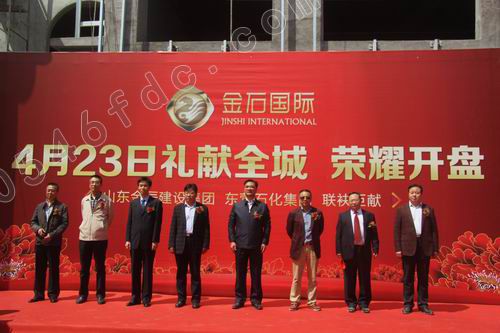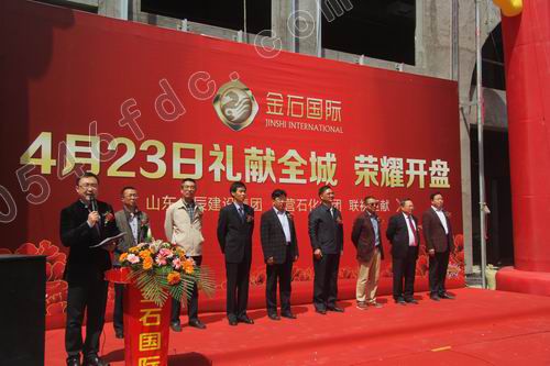 4月23日上午10时许,金石国际大厦工地现场,鲜艳的红地毯、硕大的拱门、迎风招展的红旗,一派喜庆景象。金石国际的客户以及两大公司的员工早早来到活动现场,等待金石国际荣耀开盘。上午10时45分主持人赵伟宣布金石国际大厦开盘仪式正式开始。随后,在主持人介绍下,山东金辰建设集团及东营石化集团的主要领导纷纷向观众致意。