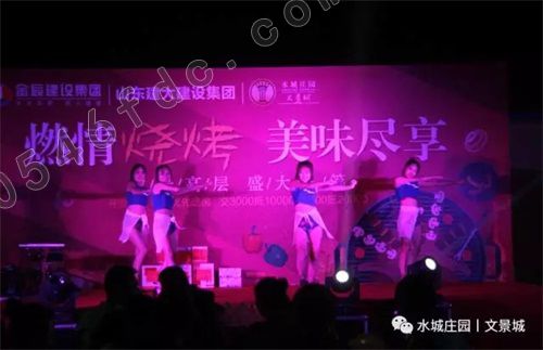 一场别开生面的烧烤party9.29日晚上在水城庄园文景城营销中心前火热上演,来访宾朋一边尽情烤肉,各种风味的烤肉、蔬菜在烤架上滋滋作响,令人胃口大开;一边欣赏魅力表演,那些扣人心弦的歌曲,魅力四射的舞蹈不时点燃现场氛围!