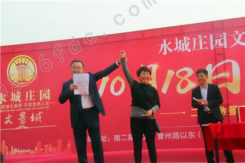 【水城庄园文景城】二期叠墅10.18荣耀开盘:幸运奖获得者与两公司领导合影留念