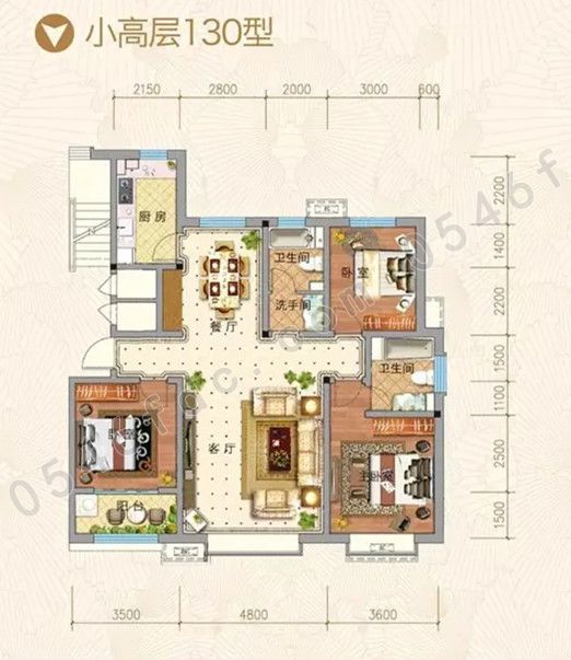【金辰胜泰花苑】河景小高层130型 三室两厅两卫户型图