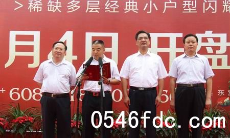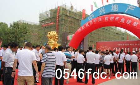 上午9点58分,由山东金辰建设集团副总经理张延国先生致开盘辞并宣布中兴茗居项目开盘:“吉时已到,鸣炮开盘!”,此后鞭炮齐鸣,礼炮震天。开盘现场喜气洋洋、气氛热烈,为炎炎夏日增添了一道亮丽的风景线。