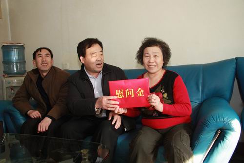 1月26日上午,东营住建委领导在我公司宋总陪同下,对我公司困难员工进行了慰问,领导们逐一走进困难员工家中,向困难员工送去了慰问金,并向大家致以节日的问候。