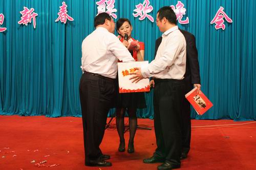 在文艺晚会现场,我公司员工表现了精彩的文艺节目,此外公司领导逐一上台抽奖,并将奖品颁发给获奖幸运员工,最后公司领导在周总带领下向大家祝酒,祝福大家在新的一年身体健康、万事如意。金辰建设集团2012年迎新春文艺晚会在欢快的歌声中圆满落幕。