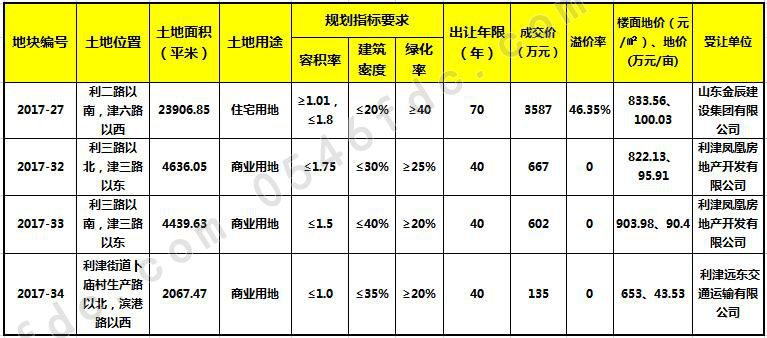 0546房产网(东营房产网)讯 东营实力本土房企---山东金辰建设集团进驻利津县城,于2018年1月斥资3587万元拿下35.86亩住宅用地。相关地块成交信息如下: