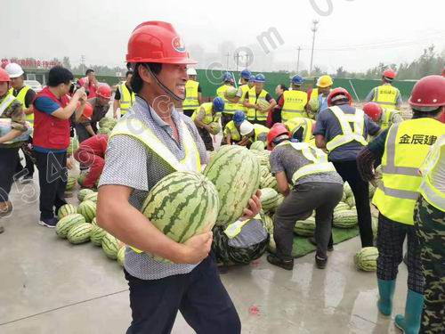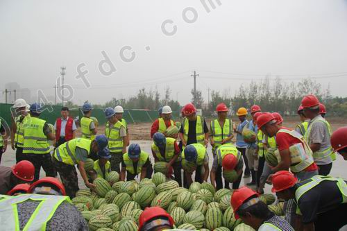 山东金辰建设集团慰问农民工“夏送清凉”活动:农民工们领西瓜